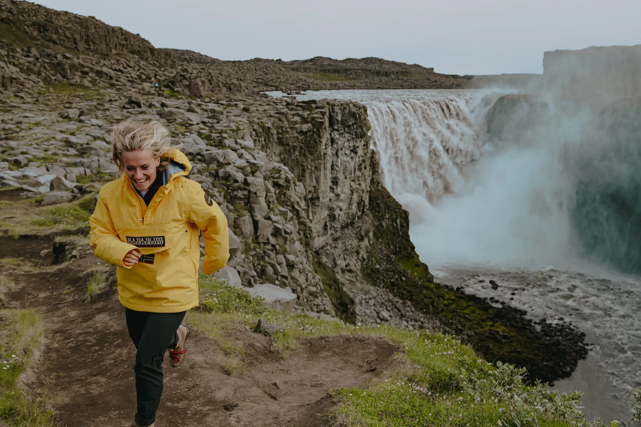 An großen Wasserfällen wirst du durch die Gischt nass. Eine Regenjacke gehört bei Island Reisen einfach dazu! - Früh oder spät kommen: